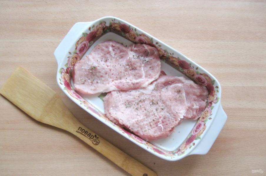 Свиную корейку немного отбейте с обеих сторон и выложите в форму для запекания.