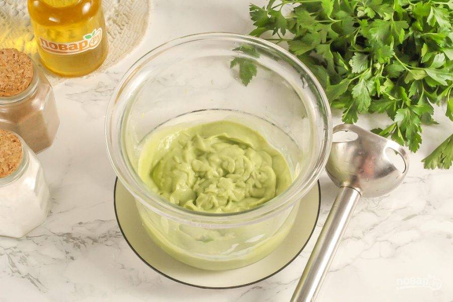 Влейте оставшееся растительное масло и отпюрируйте все до текстуры соуса.