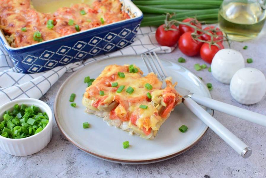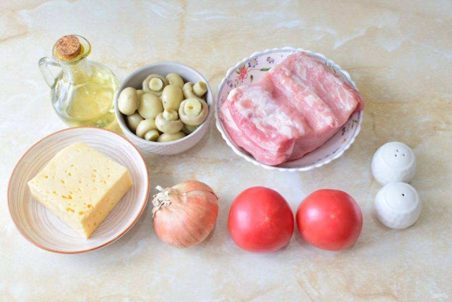 Одно из самых простых и вкусный мясных блюд для обеда или ужина. Все ингредиенты отлично сочетаются по вкусу. Шампиньоны можно взять консервированные или свежие.