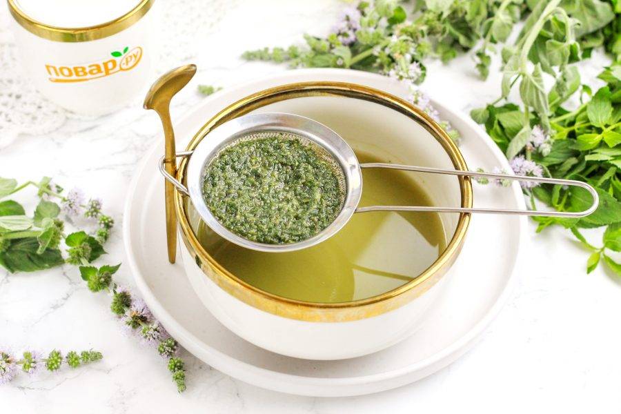 Процедите через ситечко и удалите жмых, хорошенько его выжав.