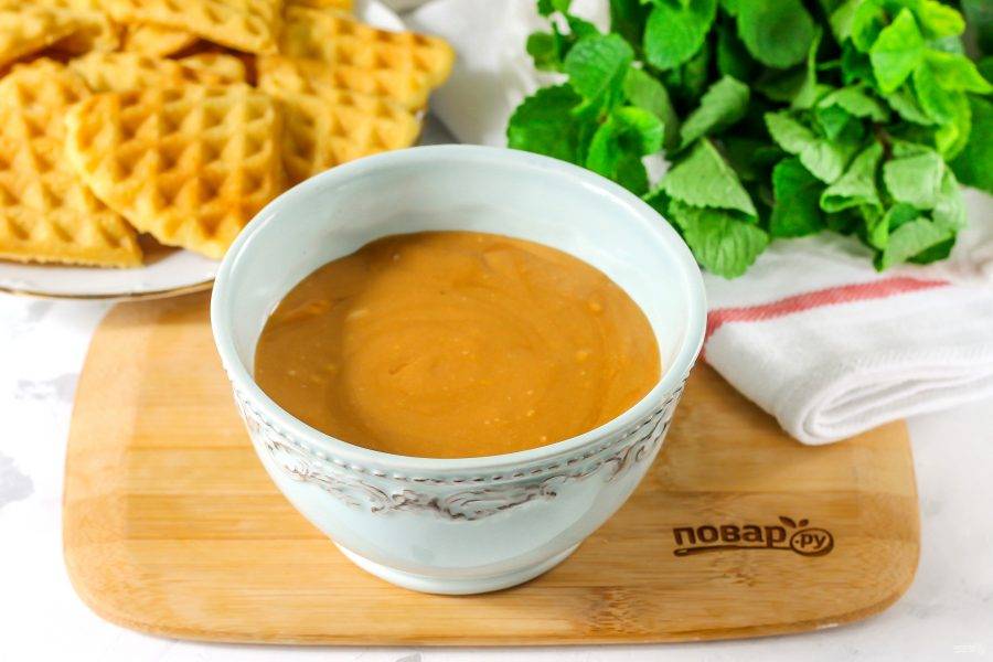 Затем охлажденный крем можно использовать как начинку для вафель.