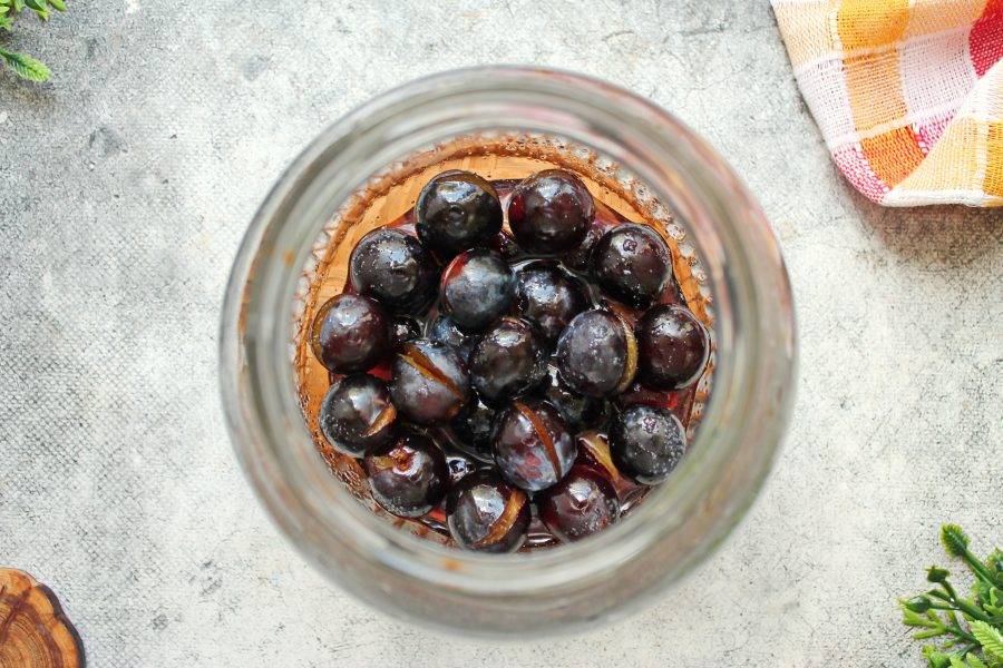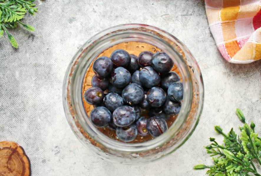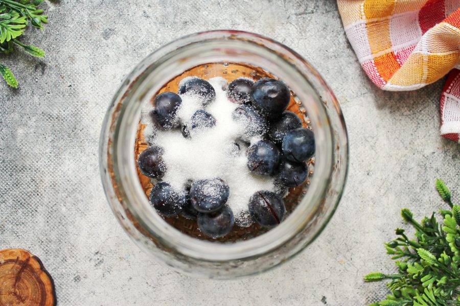 Терн вымойте, обсушите и надрежьте каждый до половины с одной стороны. Выложите ягоды в чистую, сухую банку.