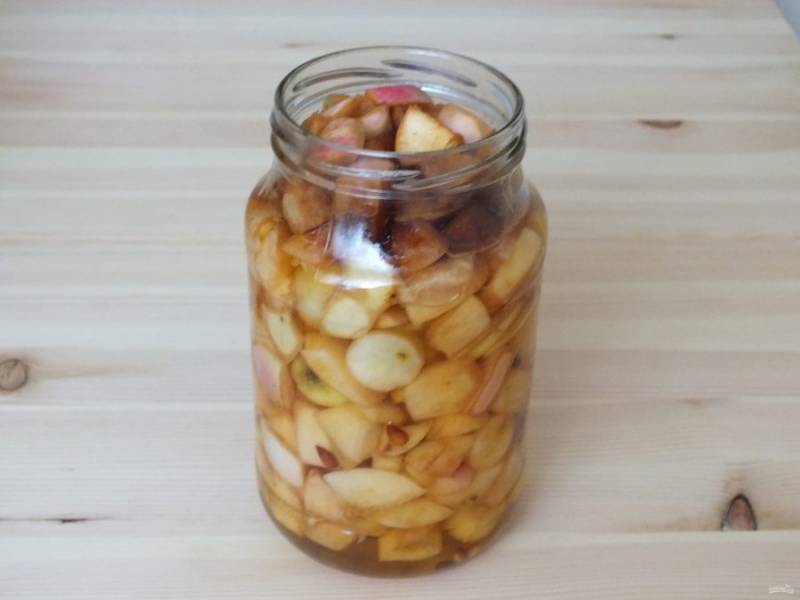 Возьмите литровую банку и доверху заполните нарезанными яблоками.