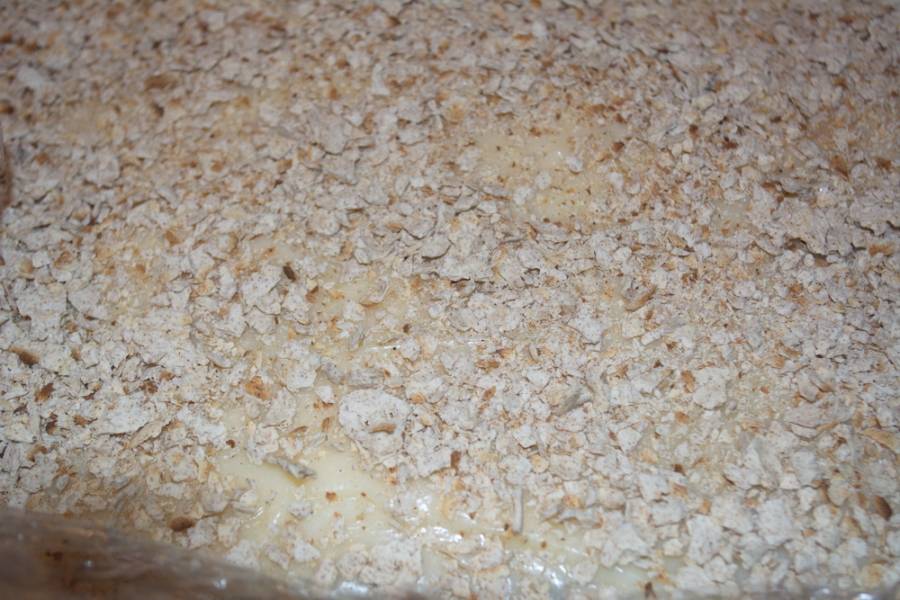 Повторяйте эти действия, пока не закончится крем и маца. 1 листик мацы оставьте для посыпки торта. Для этого измельчите его в блендере.