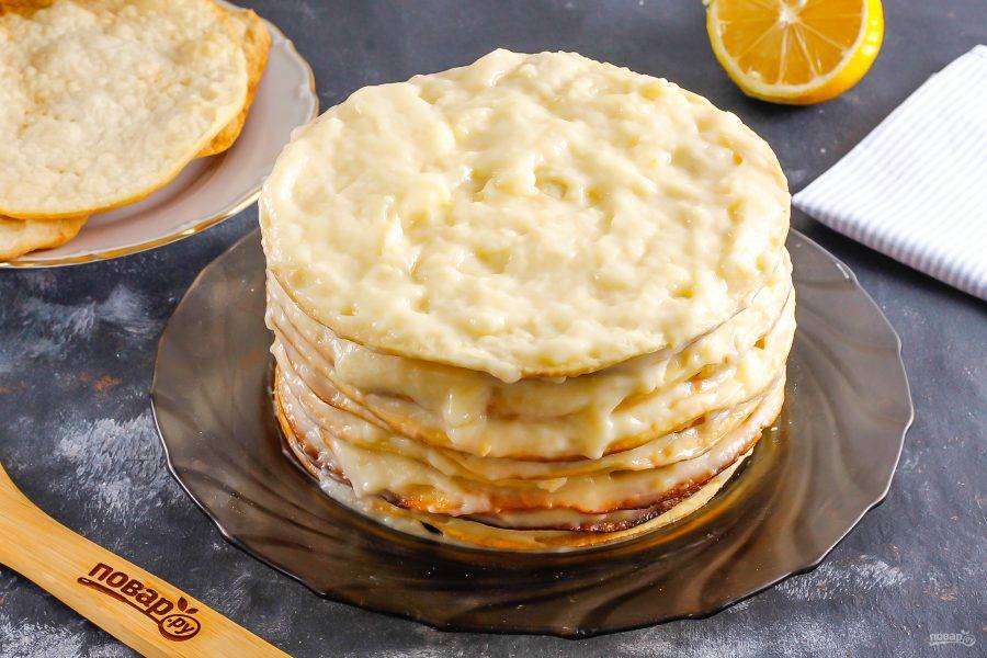 Испеките примерно 3-5 минут до хрупкости и выложите на тарелку. Таким образом испеките и остальные коржи. Остудите их 20-30 минут.