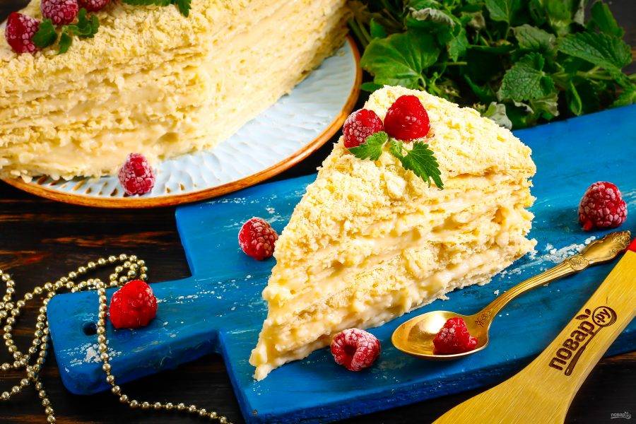 Безумно вкусный десерт можно создать за 15 минут, если у вас под рукой есть охлажденный крем и коржи для торта "Наполеон". Безусловно, лакомство лучше оставить на ночь для пропитывания в холодильнике.