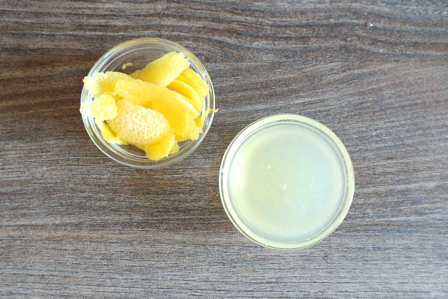 С лимона снимите цедру, только жёлтую часть. Выдавите сок.