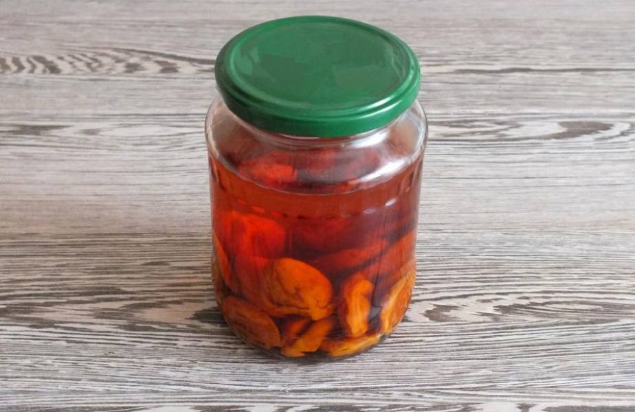 Возьмите стеклянную тару. Переложите в нее чистую, просушенную курагу. Залейте водкой. Добавьте звёздочку бадьяна.