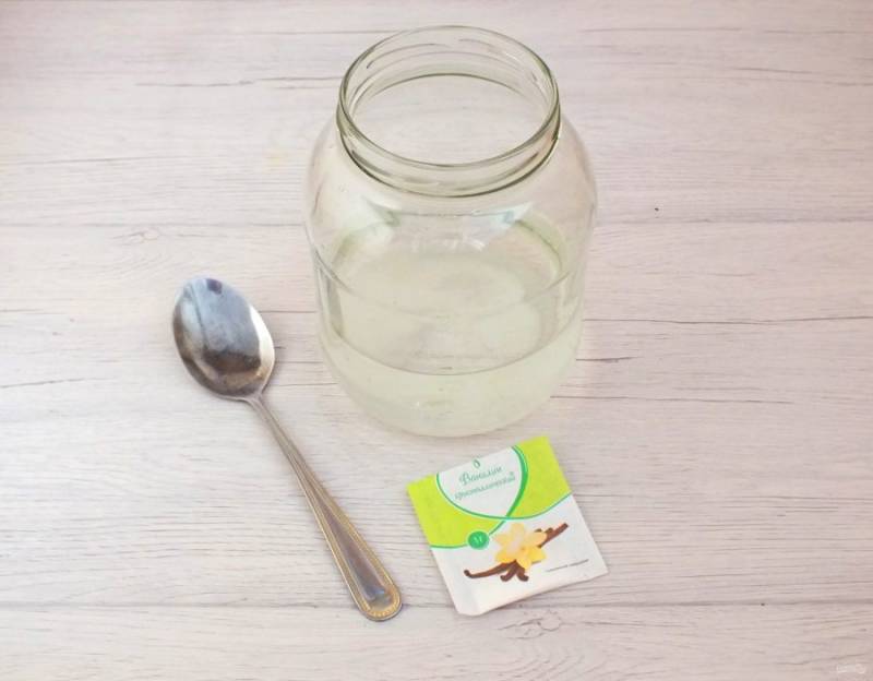 В литровую банку налейте самогон или водку. Добавьте сахар, ванилин. Перемешайте.
