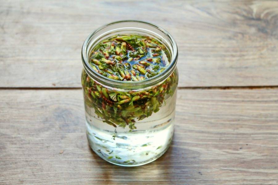 В чистую банку выложите почки смородины и залейте водкой.