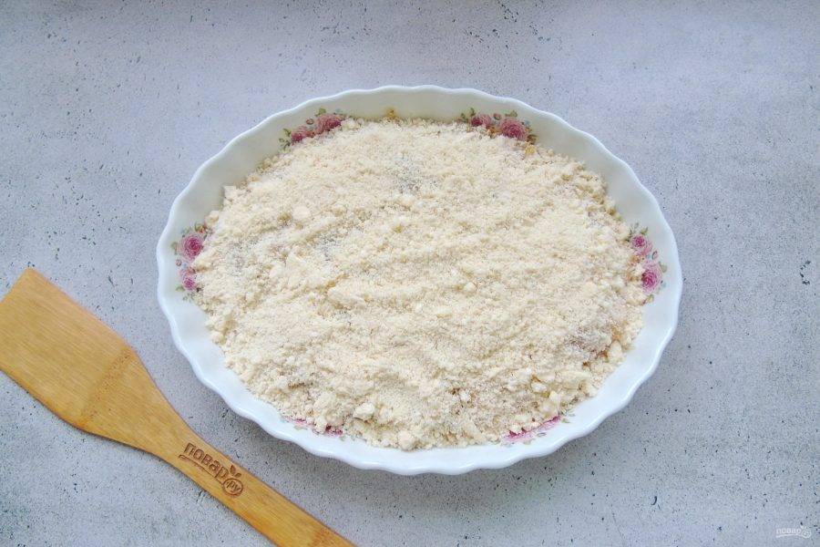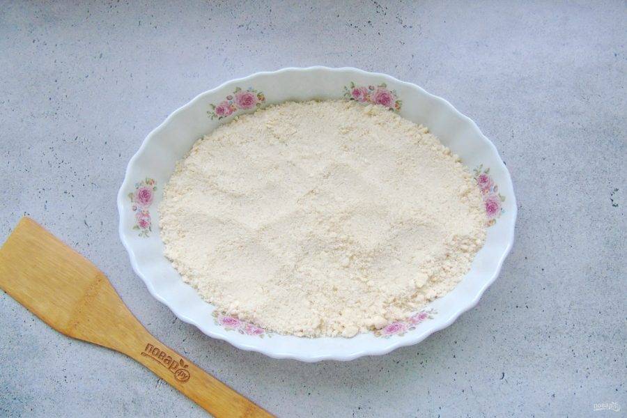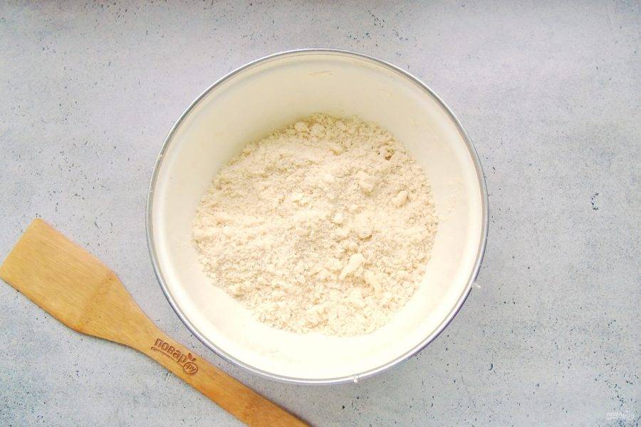 Перемешайте эти ингредиенты до консистенции рассыпчатой крошки. Это можно сделать ложкой, вилкой, рукой или миксером.