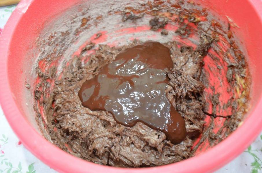 И в последнюю очередь добавьте растопленный шоколад и тщательно все перемешайте.