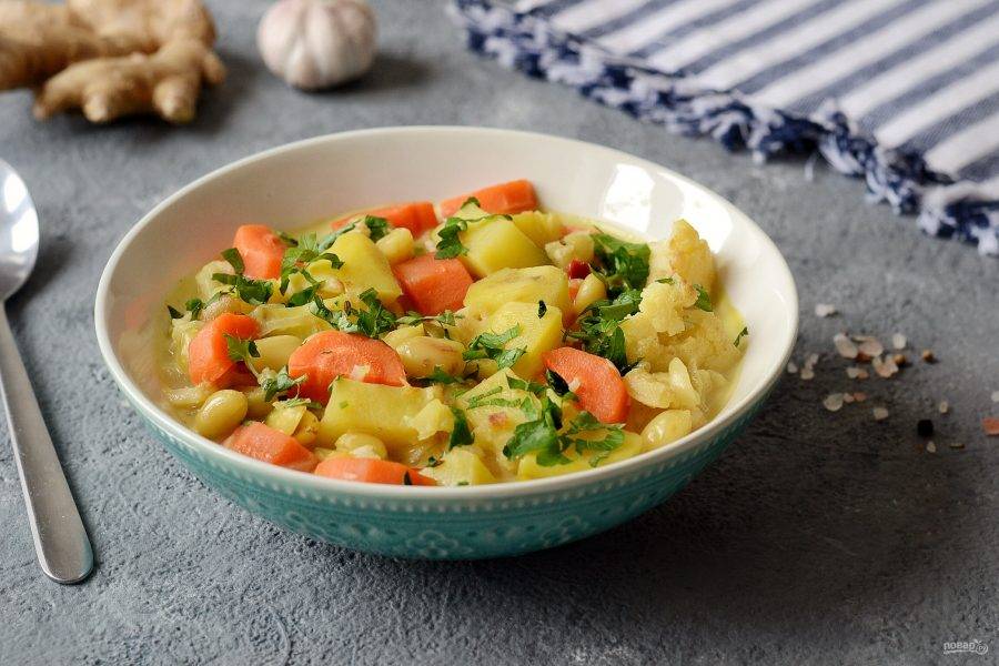 Навратан корма – это блюдо индийской кухни. Что-то вроде овощного рагу в сливочно-ореховом соусе. Блюдо получается ярким и согревающим на вкус, что особенно актуально зимой.