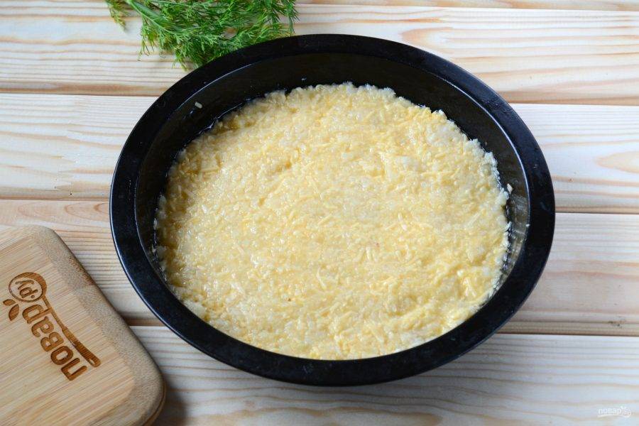 Полученную массу переложите в форму для запекания диаметром 20-22 см. Запекайте в духовке 10-15 минут, пока масса не схватится.