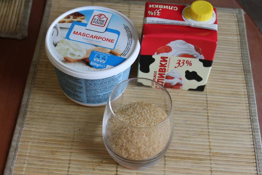 - Сахар коричневый 200 грамм (50 гр в тесто, 100 гр в крем, 50 гр в соус)