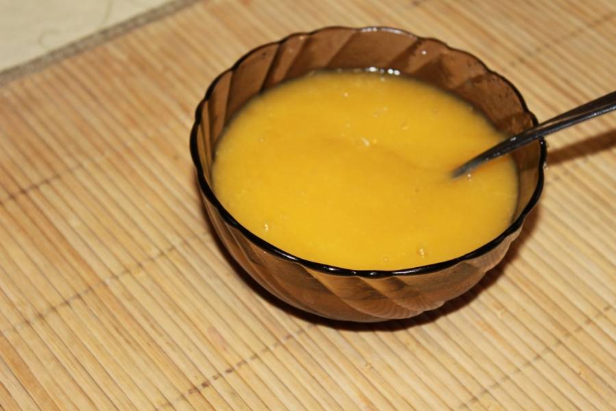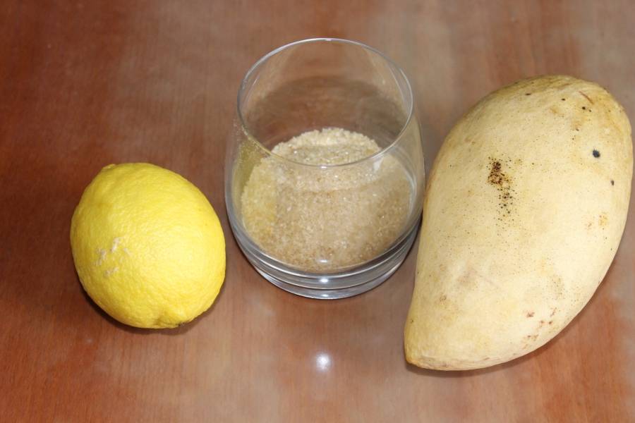 Манго нарезаем кусочками взбиваем в блендере с лимонным соком и коричневым сахаром