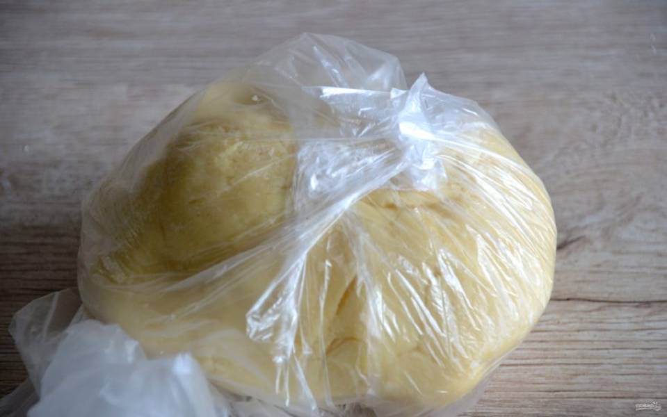 Уберите тесто в пластиковом пакете в морозильную камеру на 30-40 минут.