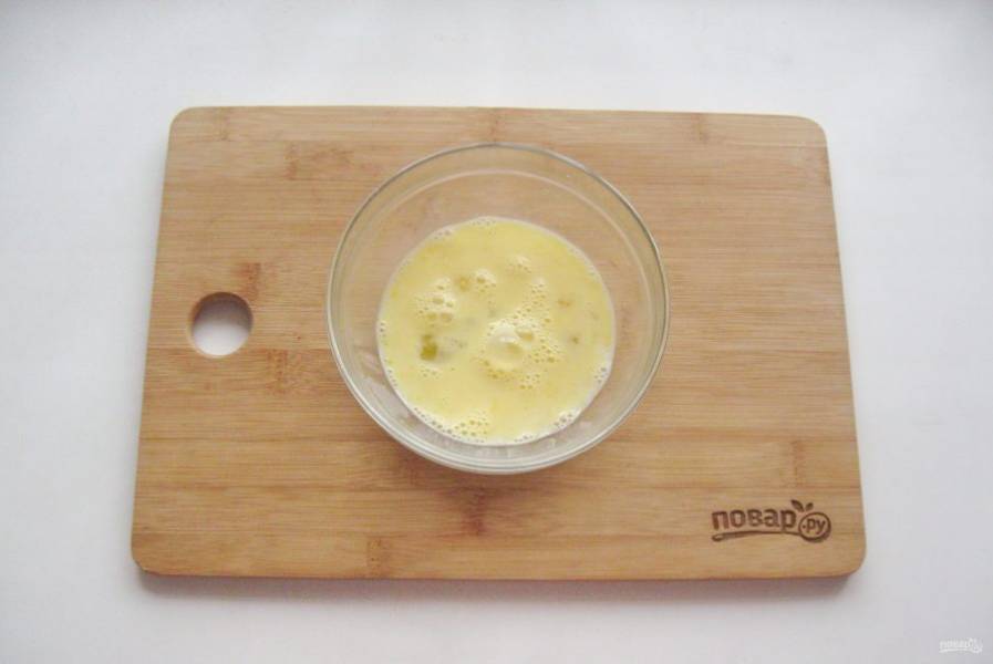 В другой миске взболтайте яйцо с молоком и солью.
