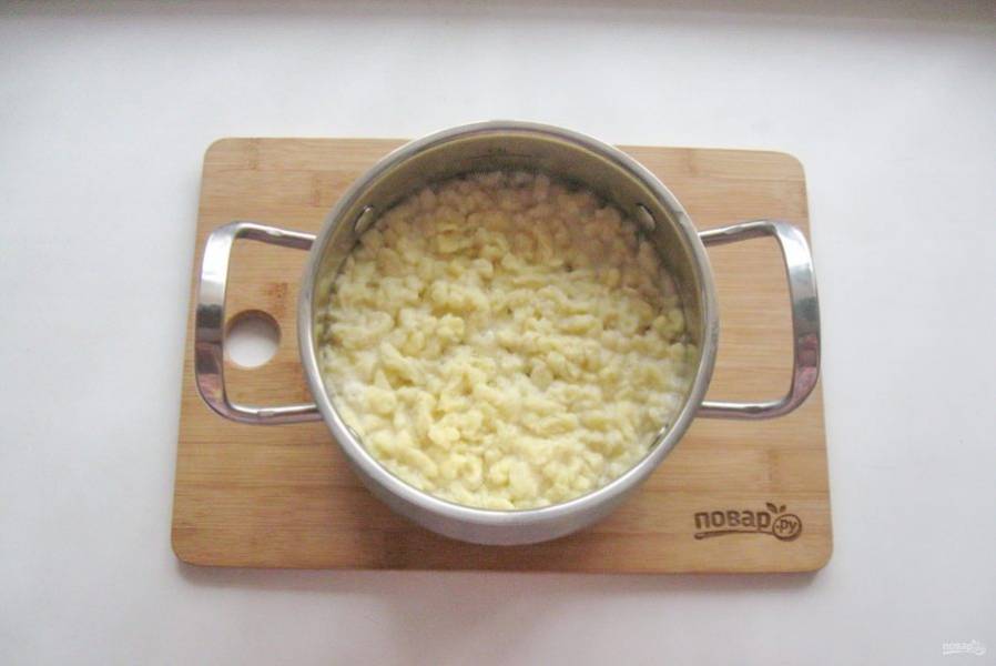 Таким образом пропустите через терку все тесто. Варите клецки еще 2 минуты на небольшом огне.