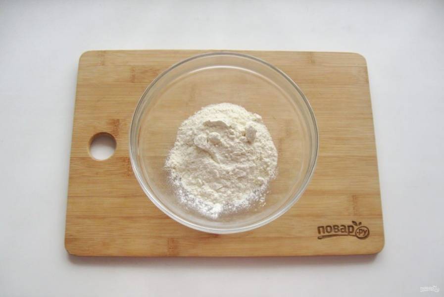 В миску насыпьте муку. Её может быть чуть больше или чуть меньше количества указанного в ингредиентах. Вся мука разная.
