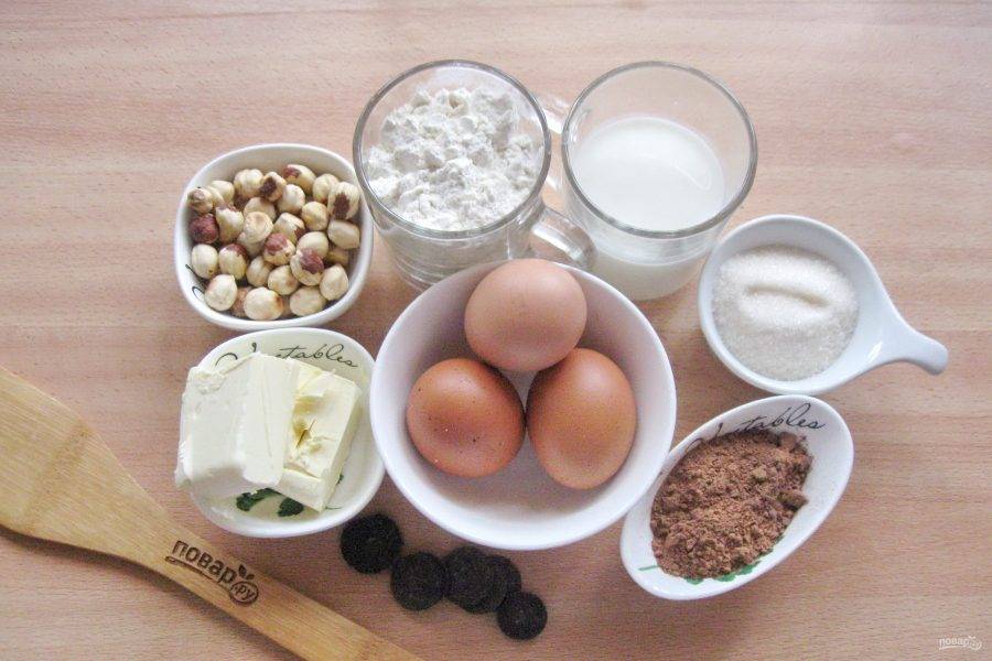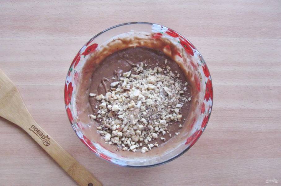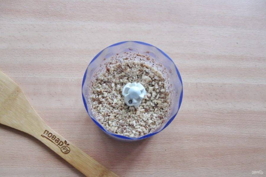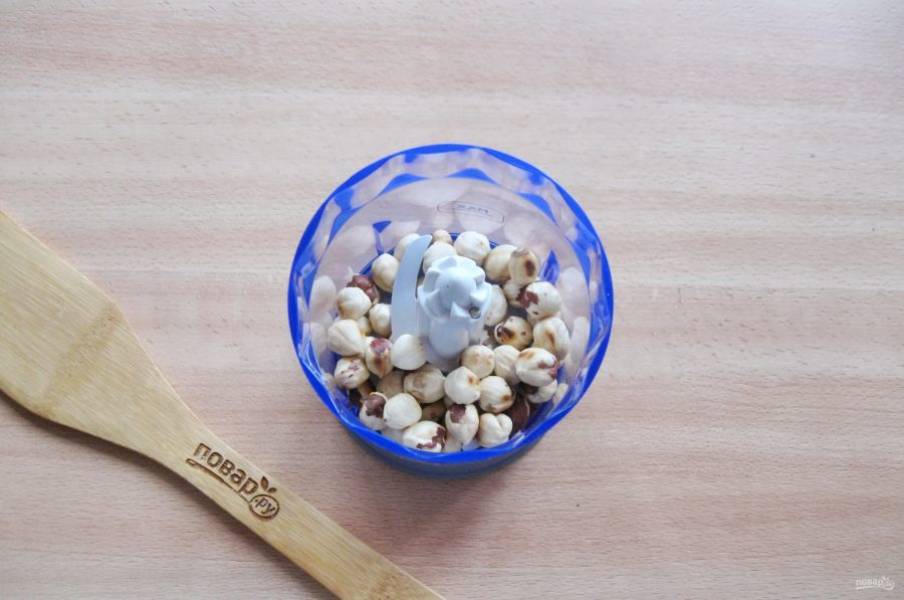Измельчите фундук в крошку с небольшими кусочками ореха.