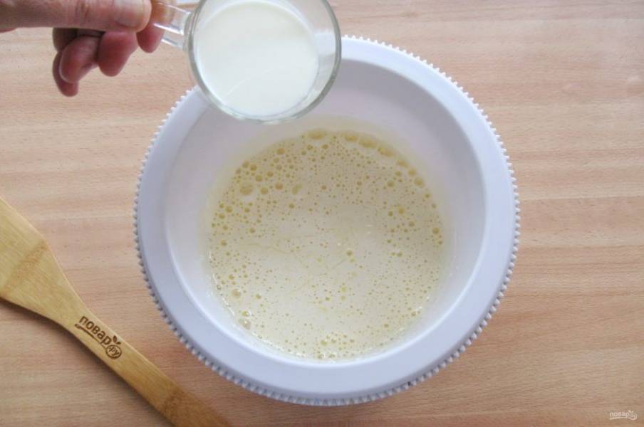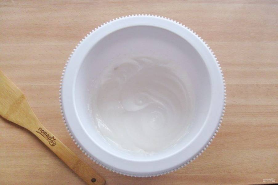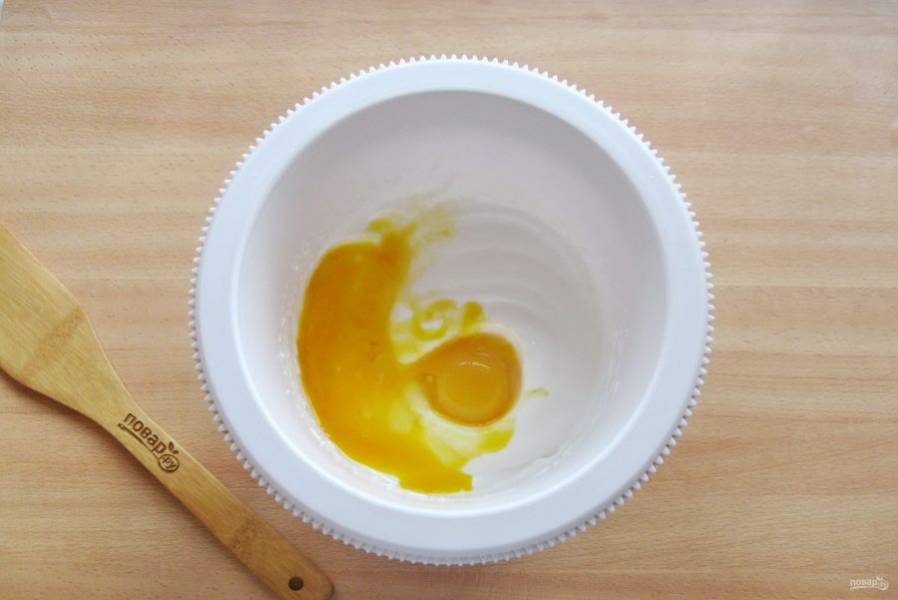 Белки отделите от желтков. Взбейте белки миксером до мягких пиков. После постепенно добавьте сахар, не переставая взбивать.