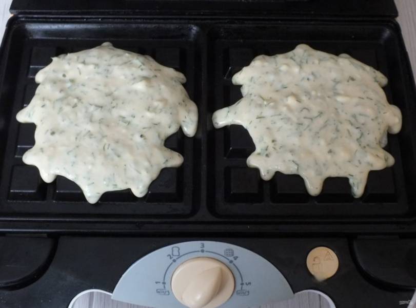Оставьте тесто на 10 минут. За это время разогрейте вафельницу.