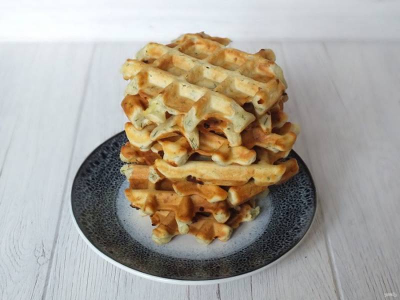 Мало кто знает, но несладкие вафли можно подать в качестве отличной закуски или использовать вместо хлеба для бутербродов. Прелесть рецепта заключается в универсальности добавок. Я взяла сыр и укроп.