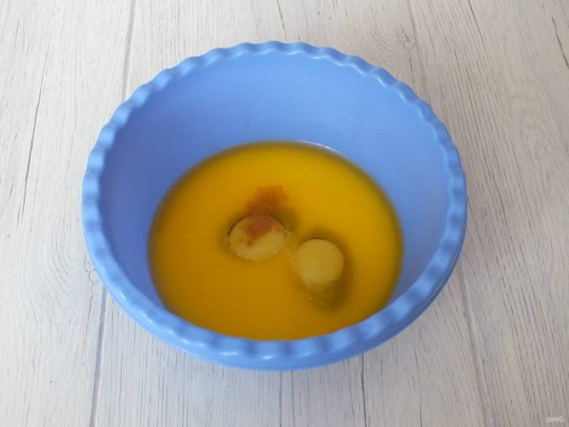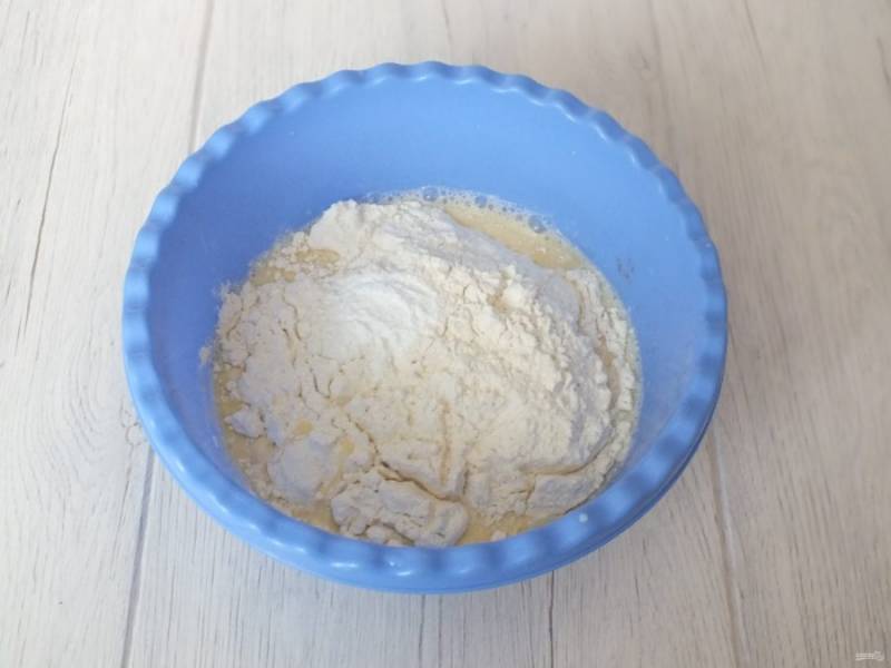Добавьте молоко, муку, разрыхлитель. Взбейте.