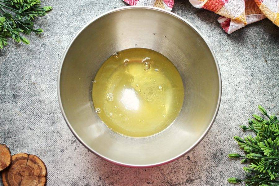Разделите яйца на белки и желтки в разные миски. В белок не должно попасть ни грамма желтка, иначе ничего не получится. В миску с белком добавьте щепотку соли.