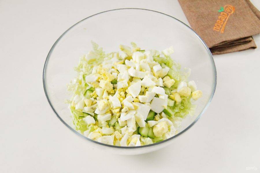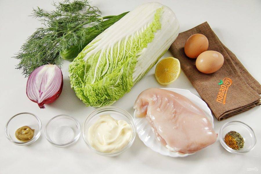 Подготовьте все ингредиенты. Яйца заранее сварите вкрутую и остудите.