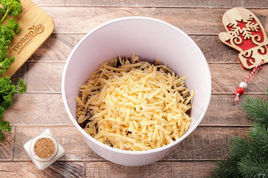 Сыр натрите на крупной тёрке.