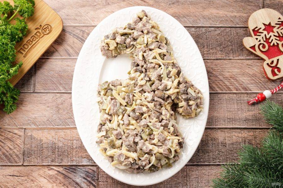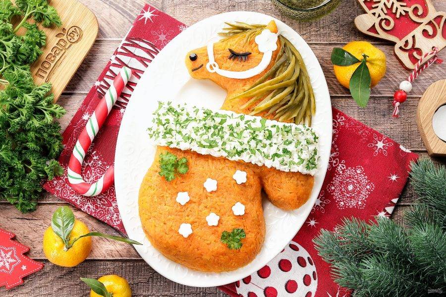 Новогодний салат "Варежка" на год Лошади