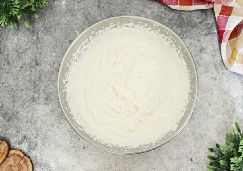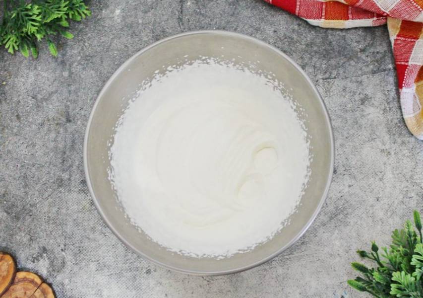 Перед тем как начать сборку торта, нужно доделать крем. Для этого холодные сливки взбейте до плотных пиков.
