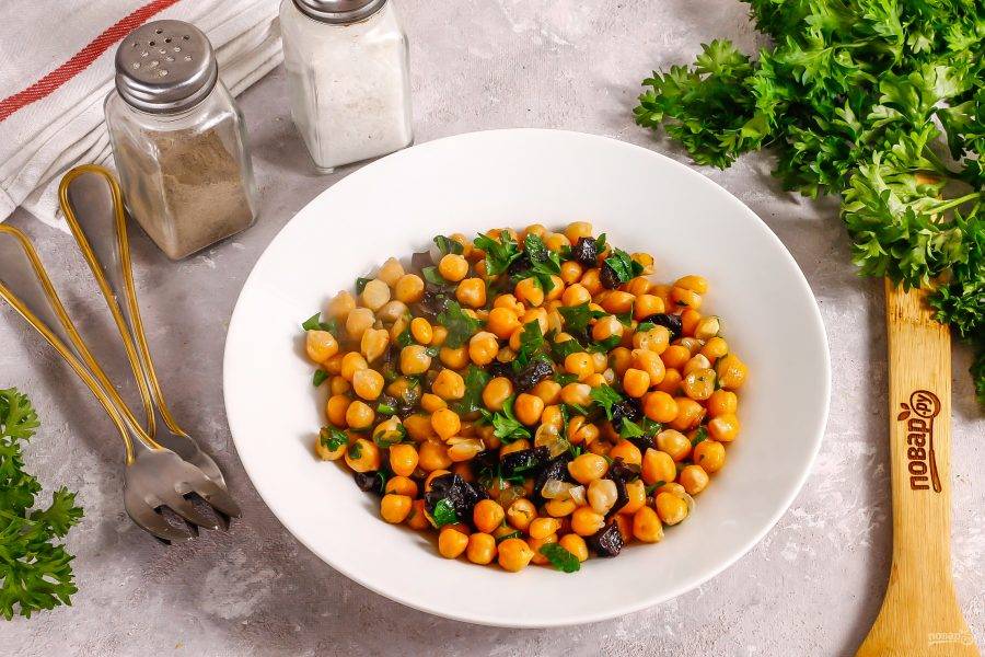 Выложите нут с черносливом в тарелки и подайте к столу как самостоятельное блюдо или как гарнир.