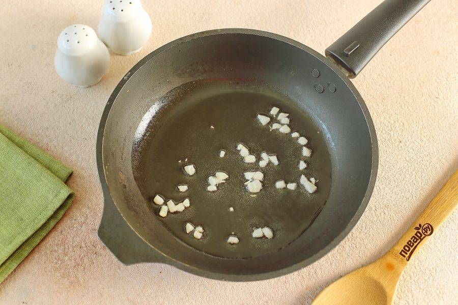 В сковороде разогрейте масло, и обжарьте чеснок в течение 2 минут.