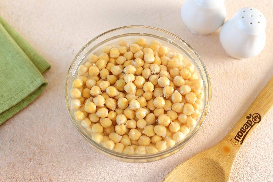 Начнем приготовление с того, что нут необходимо замочить в холодной воде на несколько часов. Я оставляю на ночь.