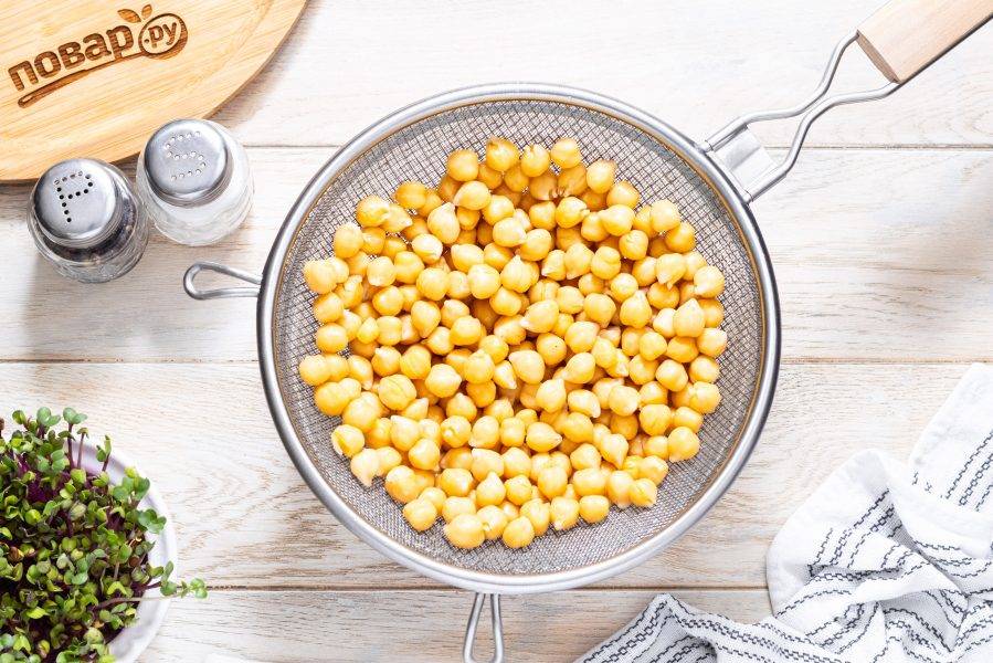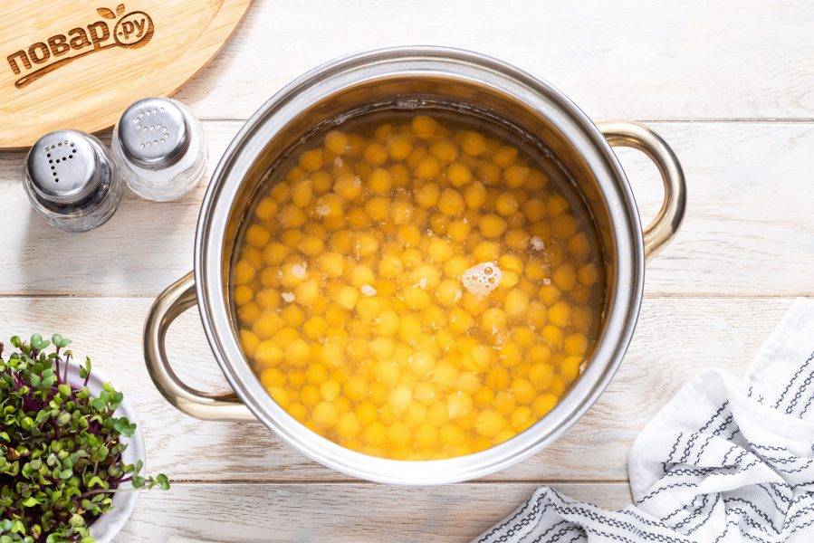После промойте нут, переложите в кастрюлю и влейте чистую воду. Отварите до готовности.