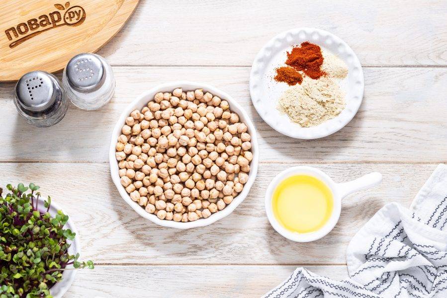 Подготовьте все ингредиенты. Нут предварительно замочите в воде на ночь.