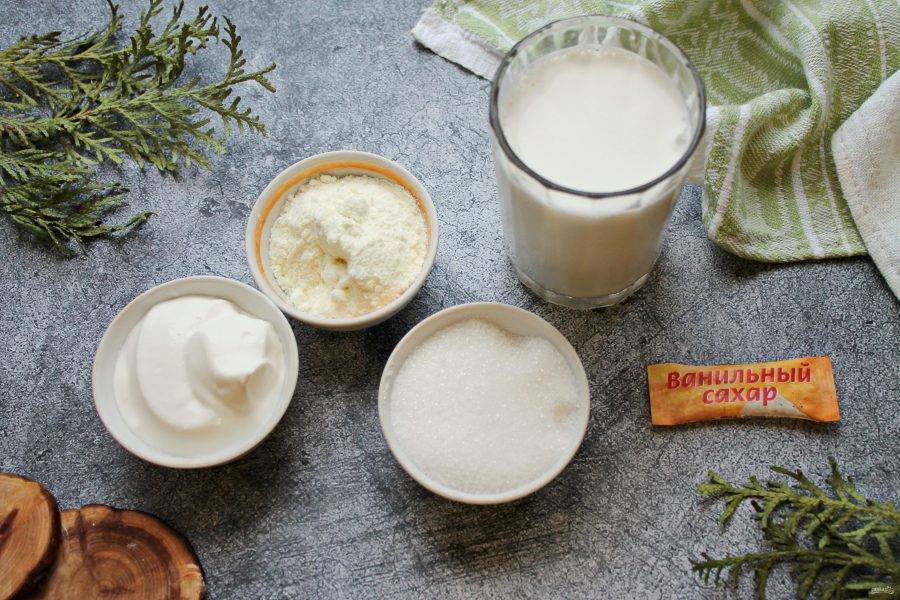 Подготовьте все необходимые ингредиенты для приготовления обезжиренного ванильного йогурта.