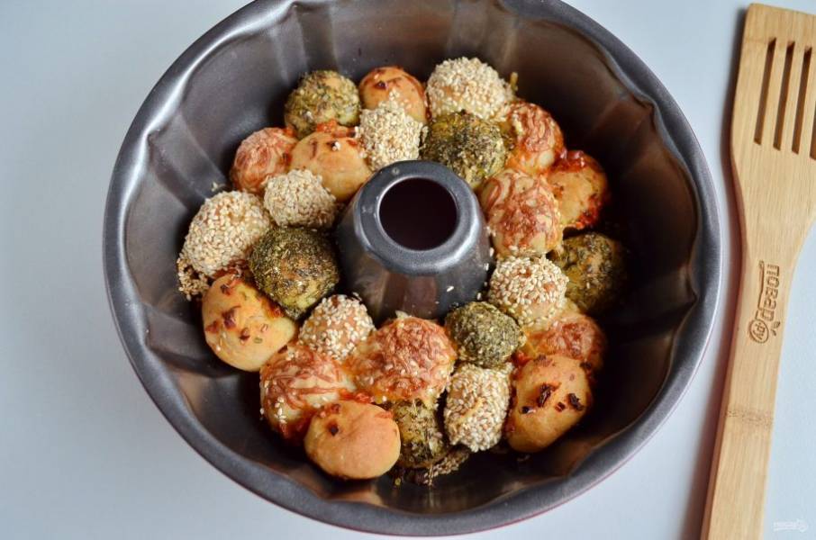 Выкладывайте шарики в смазанную форму в любом порядке.