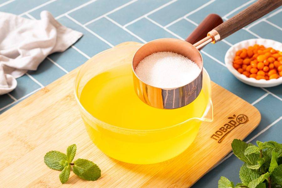 Добавьте сахар, снова доведите до кипения и проварите, пока он полностью не растворится.