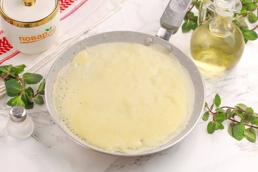 Тщательно разогрейте сковороду и смажьте ее в первый раз растительным маслом без аромата или топленым сливочным. Влейте немного теста на сковороду с помощью половника и округлите. Обжарьте по 1-2 минуты с каждой стороны до румяности. Если блины подгорают со всех сторон, убавьте нагрев до умеренного.