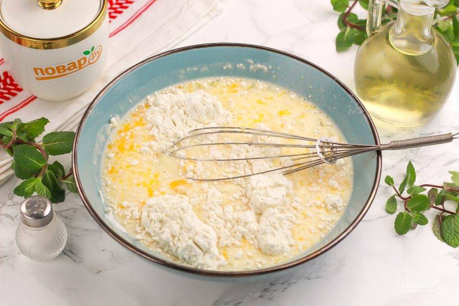 Всыпьте по частям пшеничную муку высшего сорта и вмешайте ее в жидкую основу, но не взбивайте. При взбивании получатся комочки, а этого в блинном тесте лучше не допускать! Влейте растительное масло и снова перемешайте. Оставьте тесто на 15-20 минут в покое, чтобы активировалась клейковина. Спустя указанное время оно готово к жарке.