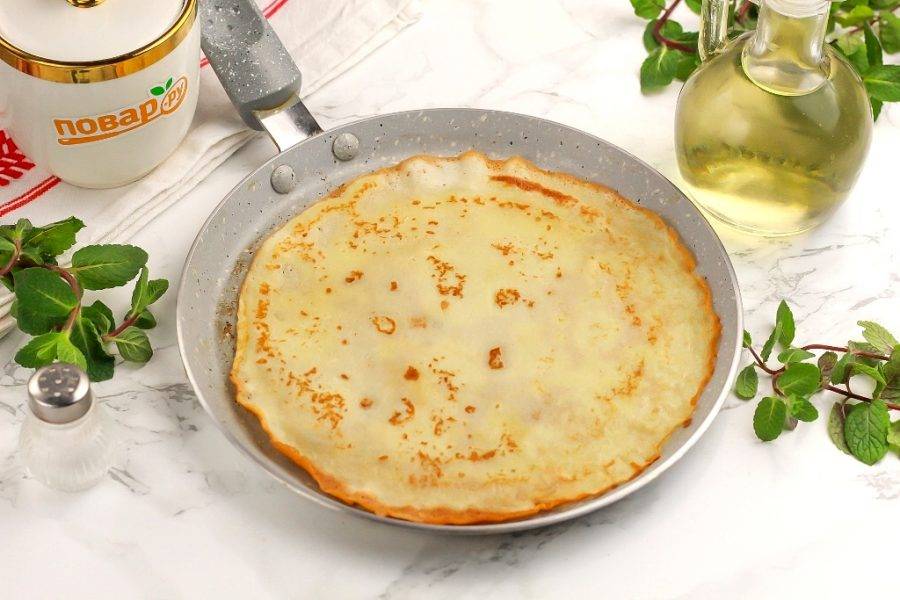 Выложите готовый блин на тарелку и таким же образом обжарьте остальные блины.