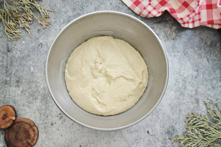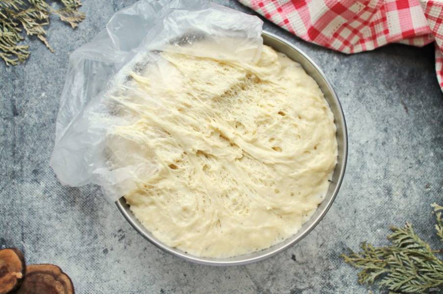 Миску с тестом покройте и уберите в теплое место для подъема на 1.5-2 часа.