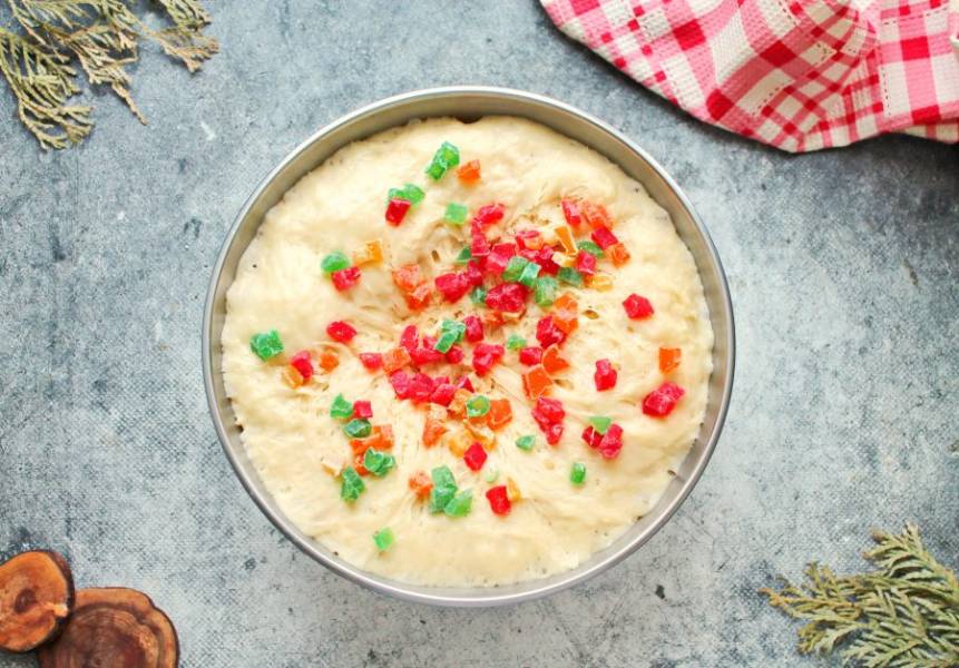 Цукаты порежьте на кусочки, добавьте в тесто и вместе с ними обомните тесто.