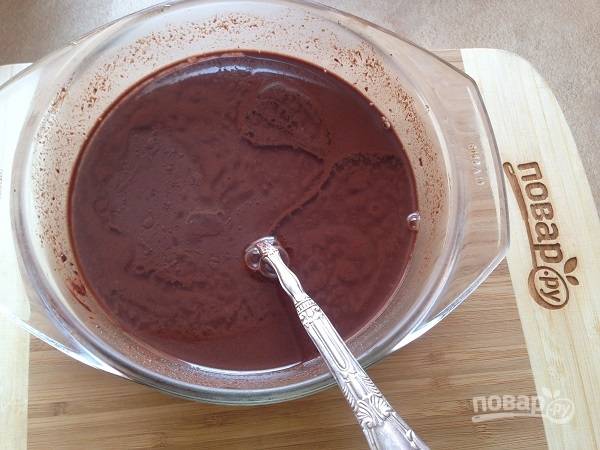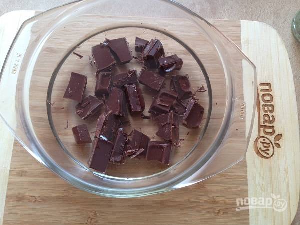 1. Растопим в микроволновке или на плите шоколад в воде, тщательно размешаем, даем остыть.