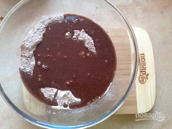 3. В остывший шоколадный раствор вливаем растительное масло и перемешаем.