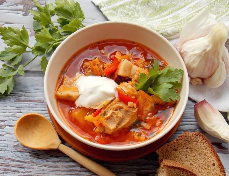 Если любите борщ, но классический вариант надоел, приготовьте борщ одесский. Получается он насыщенным и наваристым. Ведь в его составе, помимо обычных продуктов, грудинка, болгарский перец и сало.